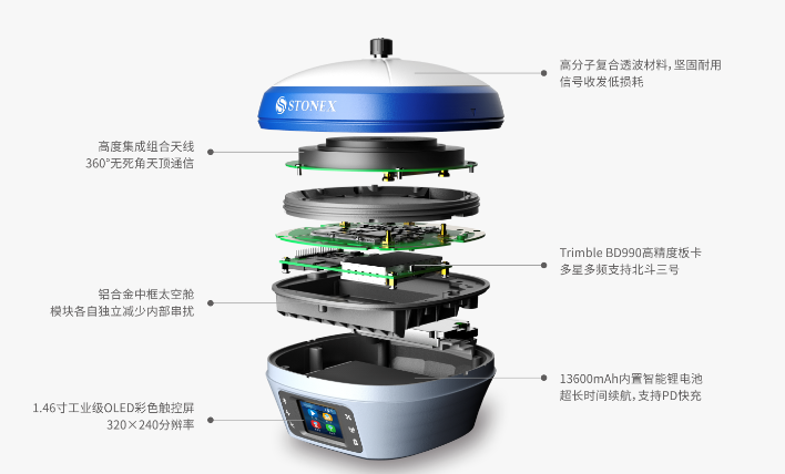 真正全兼容全互通內(nèi)置電臺(支持南方、中海達(dá)、華測、天寶、徠卡、拓普康等品牌)