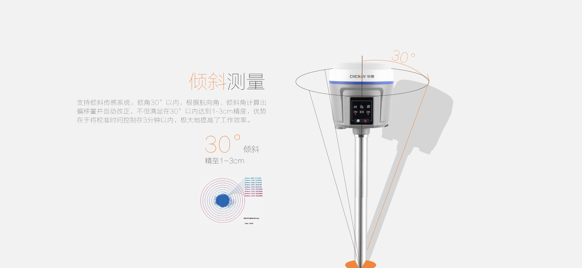 X10pro標(biāo)配支持傾斜測量系統(tǒng),支持30°以內(nèi)精度≤3cm |