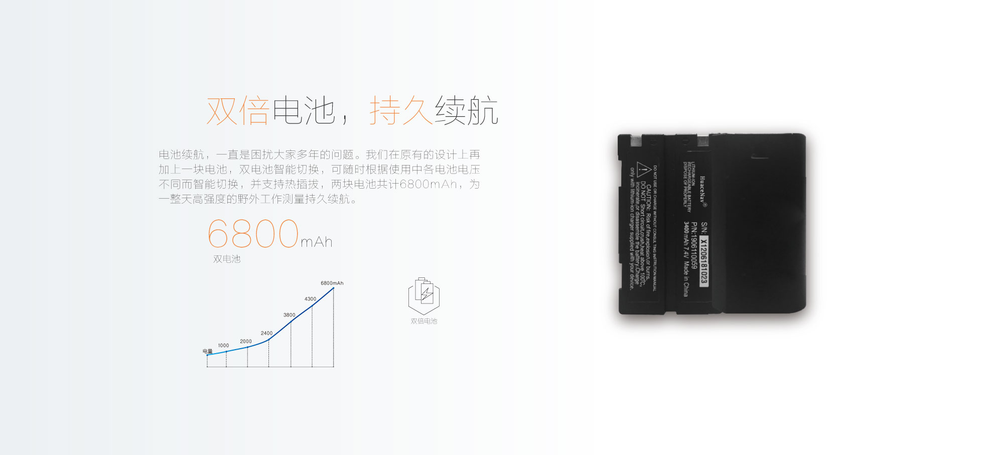 8000毫安時超大容量電池,完全保障用戶兩天的高負(fù)荷使用,防水防塵達(dá)到工業(yè)IP68等級,為外業(yè)工作提供更多便捷。